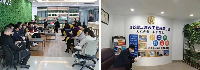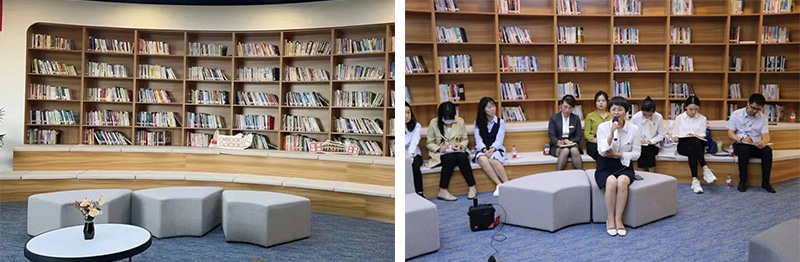 集團(tuán)以學(xué)習(xí)型企業(yè)建設(shè)為重點(diǎn),在總部辦公區(qū)域?qū)iT劃分一塊讀書區(qū),常態(tài)化組織讀書分享活動?!读杭液印氛b讀分享、“我最愛的詩歌”閱讀分享、《一件旗袍的故事》展演.......豐富多彩的文化活動吸引著職工積極參與,使集團(tuán)氤氳濃濃書香。辦公空間的閱讀區(qū)除了閱讀功能,還是一個精心打造的多元空間——階梯座、沙發(fā)座以及長吧臺等相結(jié)合,將閱讀、休閑、交流巧妙融合在了一起。豐富的設(shè)計元素相疊加,不僅構(gòu)建了集團(tuán)企業(yè)文化的精神世界,也豐滿了空間組織和愉悅視覺,來讀書區(qū)小坐,翻一翻有趣的書籍,交流幾句心情,上班時緊張的神經(jīng)立刻舒緩了許多,疲憊的大腦仿佛被注入新的能量。