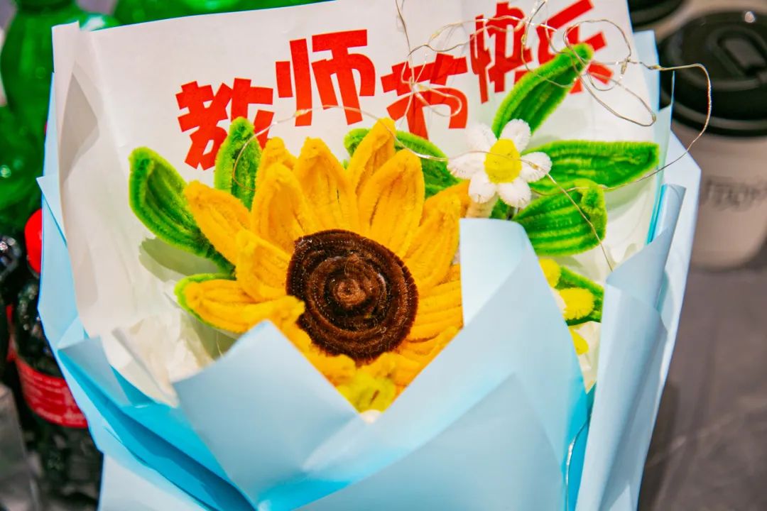 “馬上就要到教師節(jié)了,我要把親手做的花束送給我們老師!”小朋友們異口同聲地說(shuō)到。本次活動(dòng)不僅提高了孩子們的動(dòng)手能力,讓他們體驗(yàn)到了手工創(chuàng)作的樂(lè)趣,也將感恩與祝福的種子播撒在孩子們的心中。