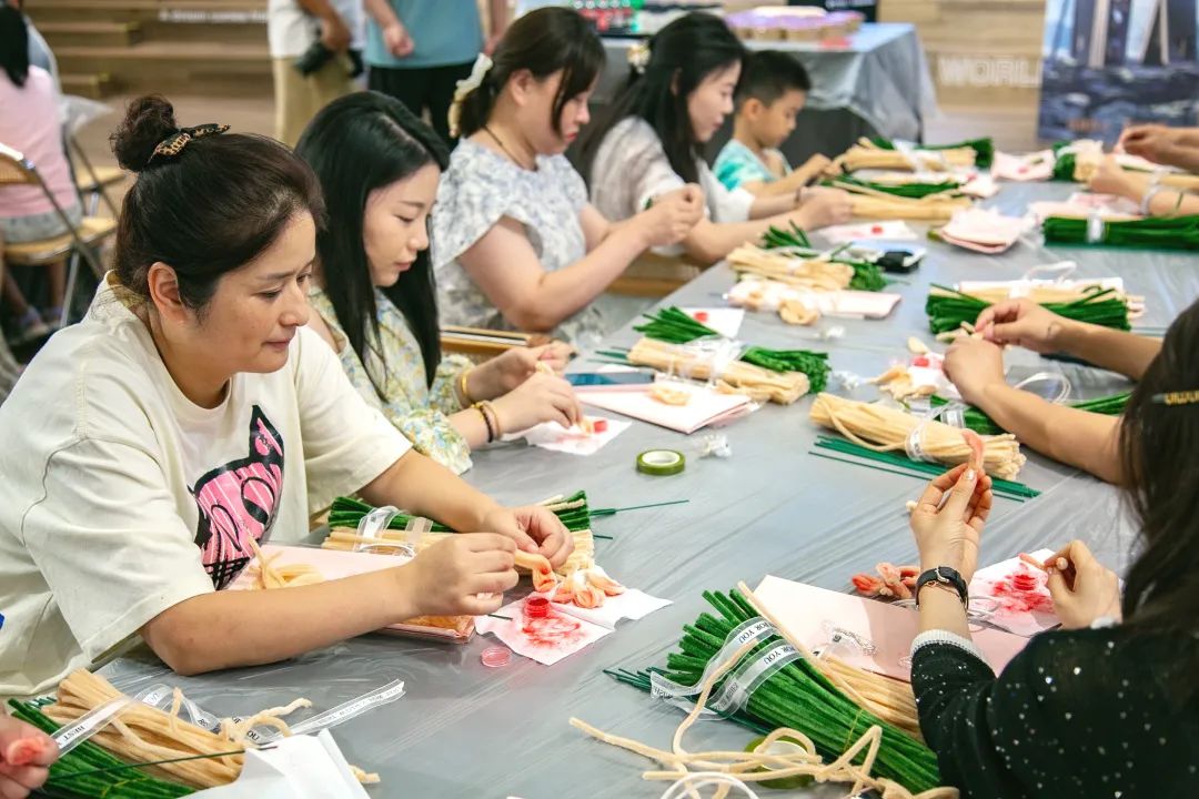 在老師的耐心演示下,大家一步步學(xué)習(xí)基礎(chǔ)制作方法,有條不紊地進(jìn)行剪、彎、扭、拼、繞一系列操作。不一會(huì)兒,一朵朵鮮艷欲滴的“花朵”在大家的手中“盛開(kāi)”,現(xiàn)場(chǎng)氛圍溫馨浪漫。