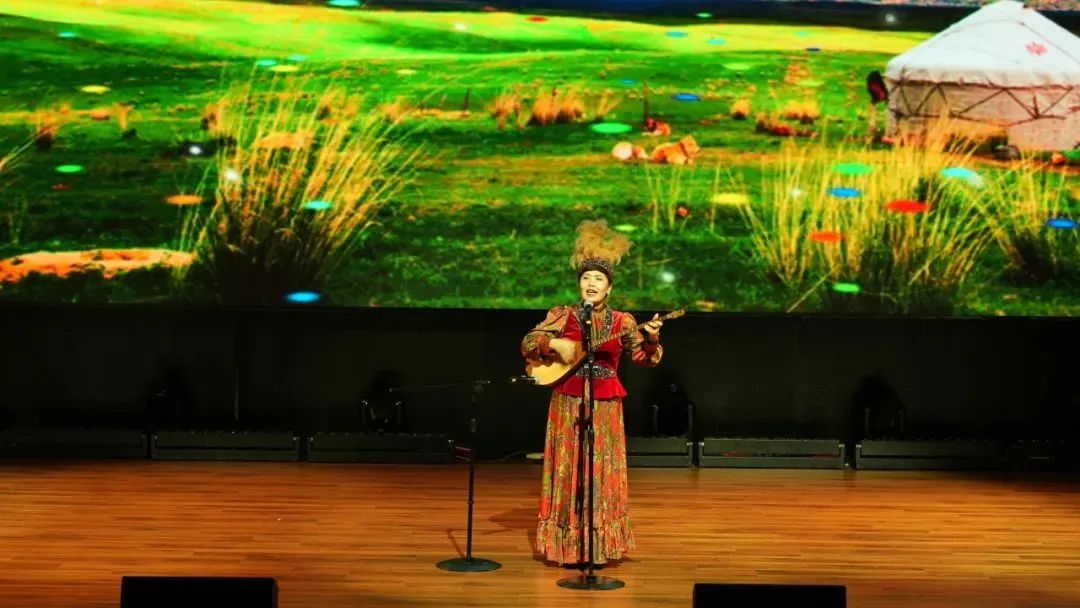 揚眉動目、晃頭移頸、拍掌彈指......新疆女子舞蹈《巧姑娘》舞姿優(yōu)美舒展,好似一只只輕快靈巧的蝴蝶,在舞臺上翩翩起舞;冬不拉是哈薩克族人心愛的樂器,一曲自彈自唱的《可麗木愛黛》讓大家仿佛置身草原上淙淙泉水旁,羊群歡騰、駿馬疾行,好不享受;國家級非物質(zhì)文化遺產(chǎn)錫伯民歌清唱著實給大家了一份驚喜,原生態(tài)歌曲《嗚呀拉依耶》氣勢磅礴如萬馬奔騰,令全場屏住呼吸聆聽;透過薩滿歌手深沉熱烈的腔音,不禁聯(lián)想到乾隆年間錫伯族人從白山黑水到伊犁河,越千山、涉萬水、扶老攜幼,橫穿漠北的“大西遷”,那份歷史使命下的堅韌執(zhí)著在民歌中回蕩。