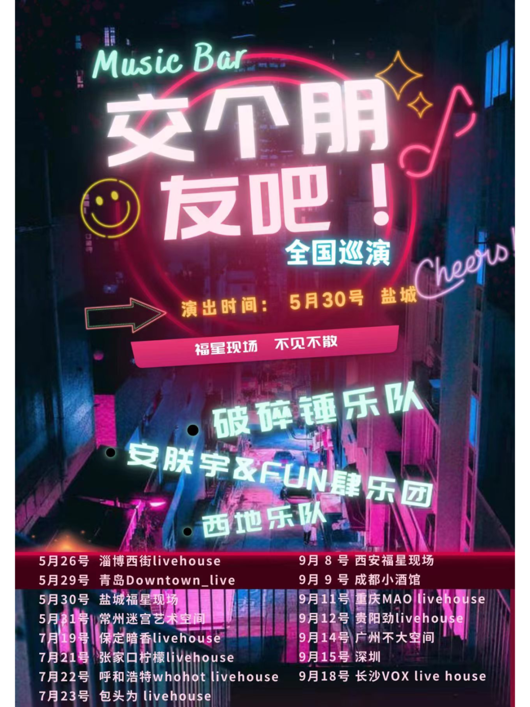 5月末音樂狂歡 | 沙漏&悶餅破碎錘樂隊(duì)/ 安朕宇&FUN肆樂團(tuán)/ 西地樂隊(duì),演出在即!