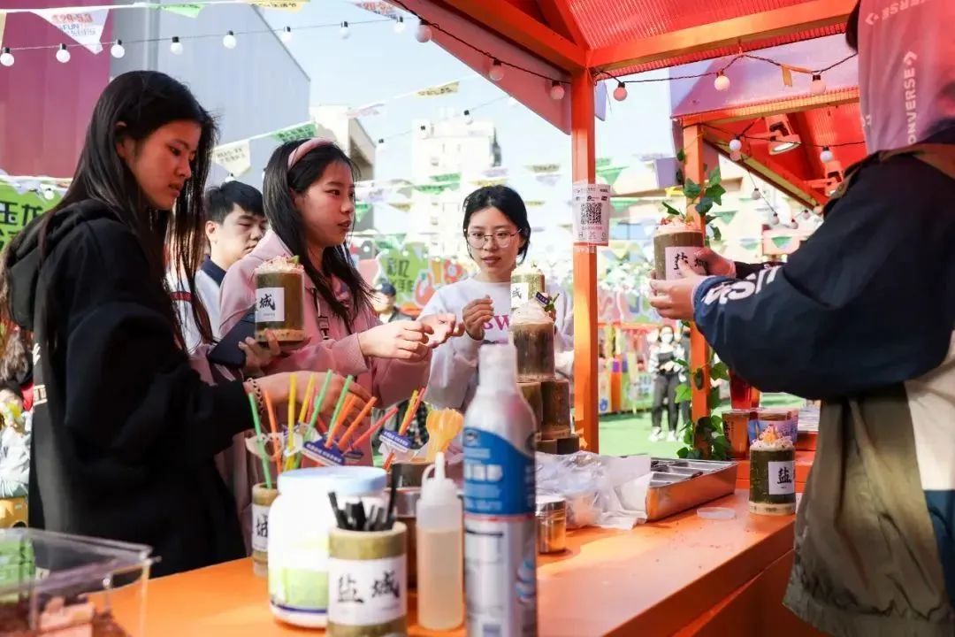 元?dú)馍钍屑瘽鉂馊碎g煙火氣,從白天到夜晚,燒烤、美食、手工制作,引人紛紛駐足體驗(yàn)。
