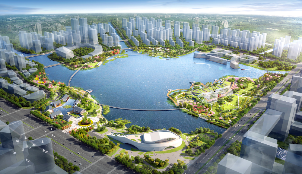 項目處于中韓(鹽城)產(chǎn)業(yè)園創(chuàng)新發(fā)展軸和韓風(fēng)文化名城核心帶的交匯處,其水域面積約32萬平方米,公園建設(shè)面積約21.73萬平方米。以這片水域為中心,共分東西南北為四個特色功能區(qū)域,分別承載時尚休閑、綠色療養(yǎng)、文化交流、創(chuàng)意體驗等,其功能定位充分考慮了周邊居住、商務(wù)、產(chǎn)業(yè)、教育的分布及定位。