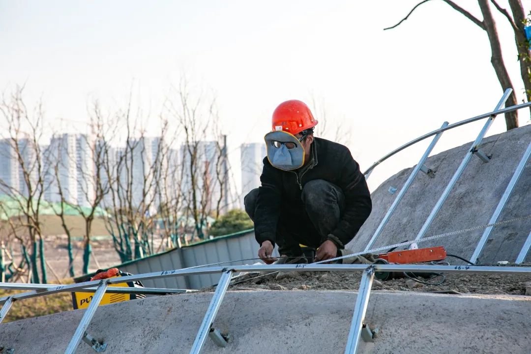 走進(jìn)項(xiàng)目工程現(xiàn)場(chǎng),機(jī)聲轟鳴、人頭攢動(dòng)。連日來,700余名建設(shè)者分布在沿湖四周各司其職:施工人員奮斗在崗,捆綁鋼筋、堆砌地磚、焊接部件……一幅搶時(shí)間、爭速度、抓質(zhì)量的搶工會(huì)戰(zhàn)、大干快干的火熱圖景徐徐展開。