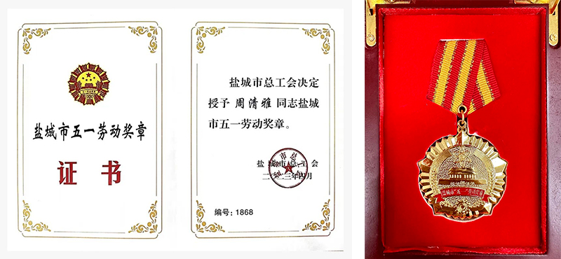 周清雅獲鹽城市五一勞動(dòng)獎(jiǎng)?wù)隆Ⅺ}城經(jīng)開區(qū)優(yōu)秀團(tuán)干部
