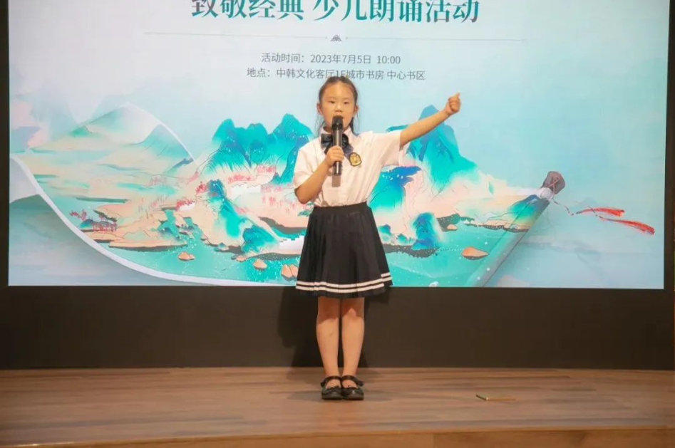為激發(fā)少年兒童的愛國情懷,讓紅色基因代代相傳,7月5日,中韓文化客廳舉辦“致敬經(jīng)典 童心飛揚(yáng)”少兒朗誦活動?;顒蝇F(xiàn)場,孩子們朗誦了《讀中國》《少年夢 中國夢》《月光下的中國》等經(jīng)典紅色篇目,用稚嫩的童音和純真的心靈表達(dá)自己對祖國最真切的情感,展現(xiàn)了朝氣蓬勃的精神風(fēng)貌,抒發(fā)了對經(jīng)典文化的無限熱愛。