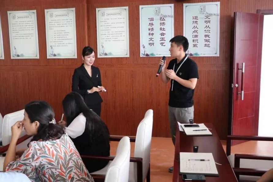 老師開(kāi)場(chǎng)講解禮儀的含義以及重要性,與新入職員工互動(dòng)交流自己對(duì)禮儀的理解
