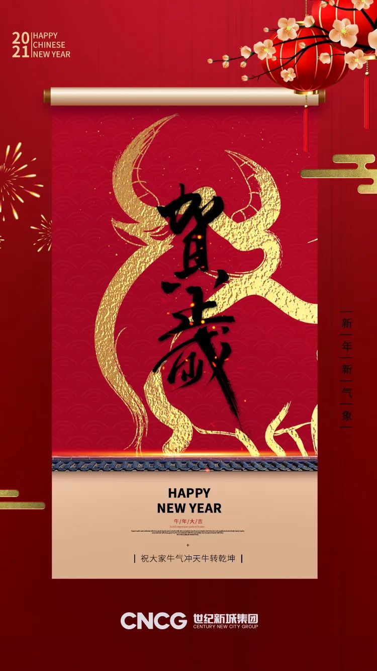 玉鼠歡騰辭舊歲,金牛如意迎春到。在這普天同慶、萬家團圓的美好時刻,世紀新城集團黨委攜全體員工向您拜年了,向關(guān)心支持集團發(fā)展的各界人士致以誠摯的問候和美好的祝福!