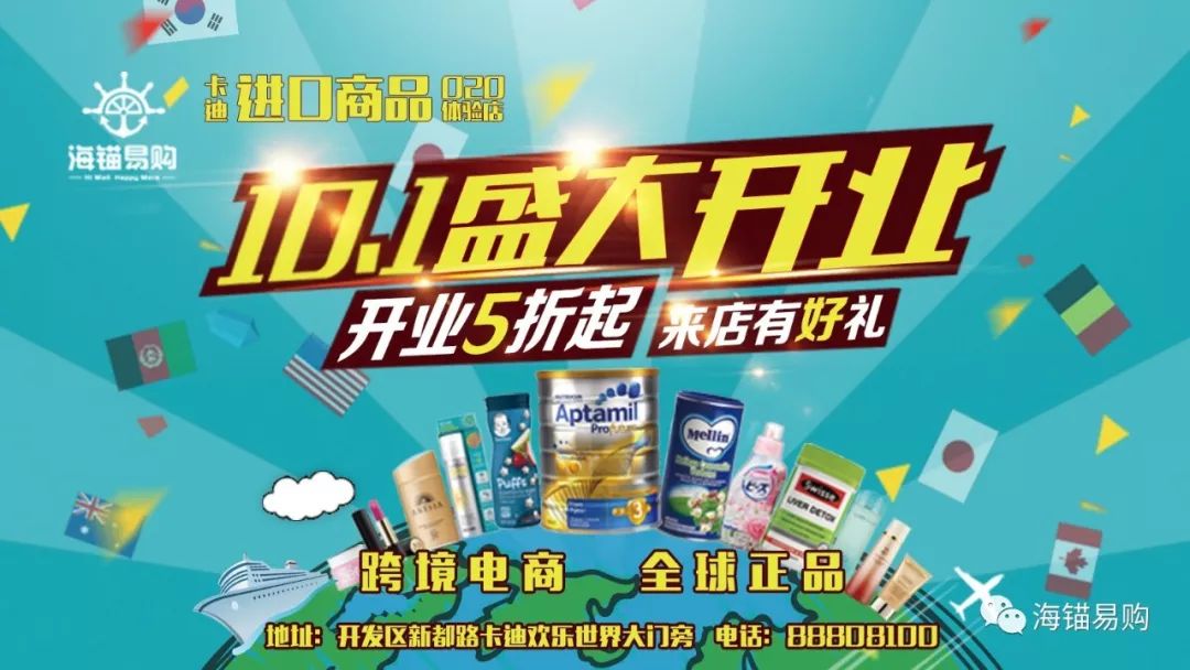 海錨易購進口商品卡迪體驗店—國慶開業(yè)三重“油”好禮!