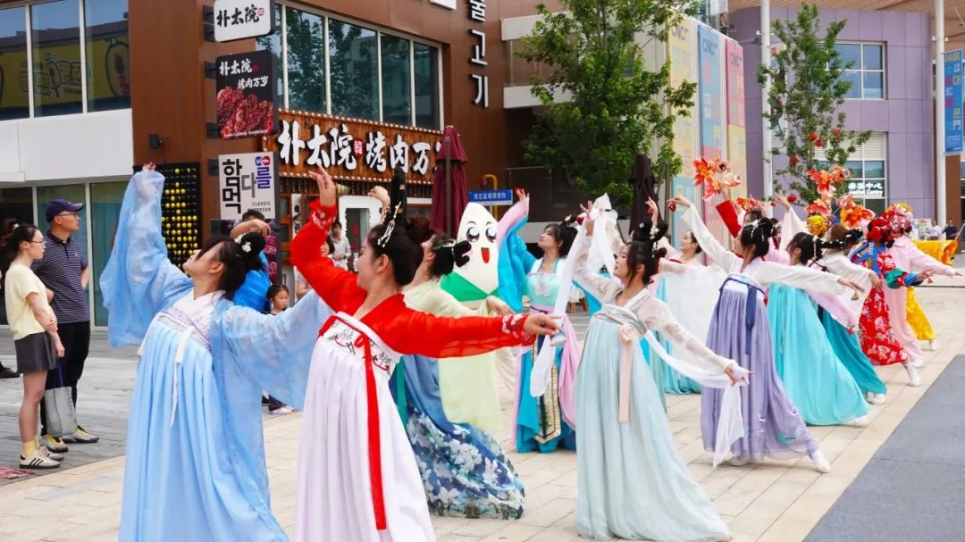 寫首爾夜市裙裾飄飄的巡游隊伍,