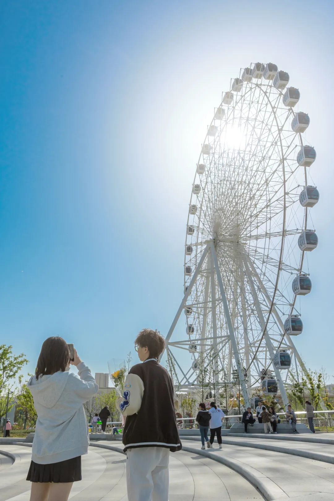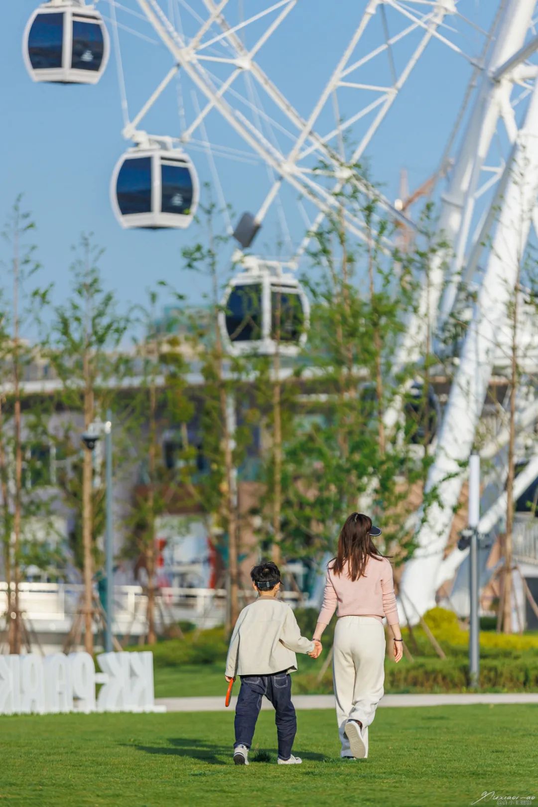 寫登上摩天輪,俯瞰城市,
