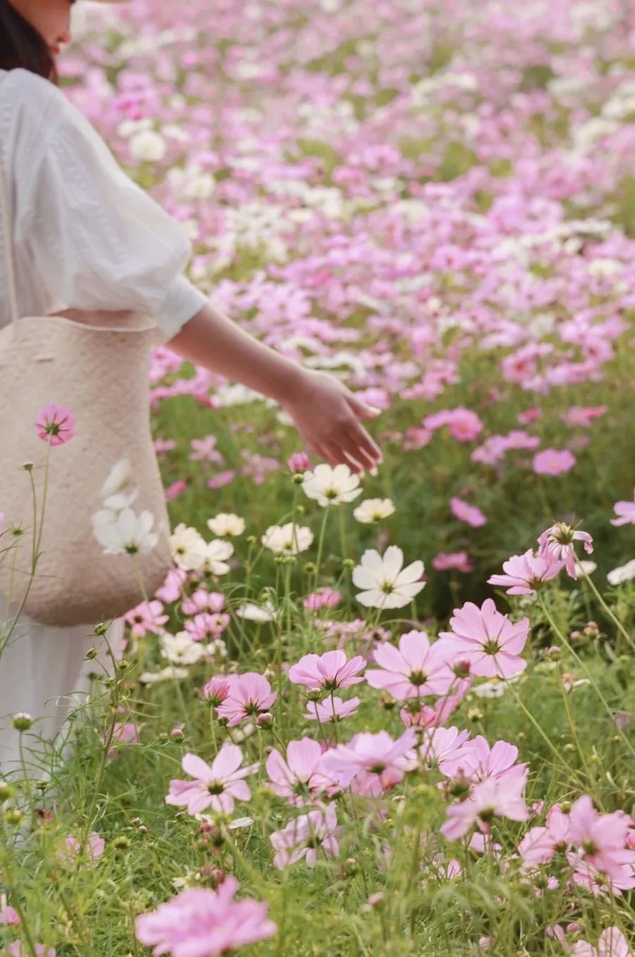 寫春風(fēng)拂過,粉色的地毯跌宕起伏,