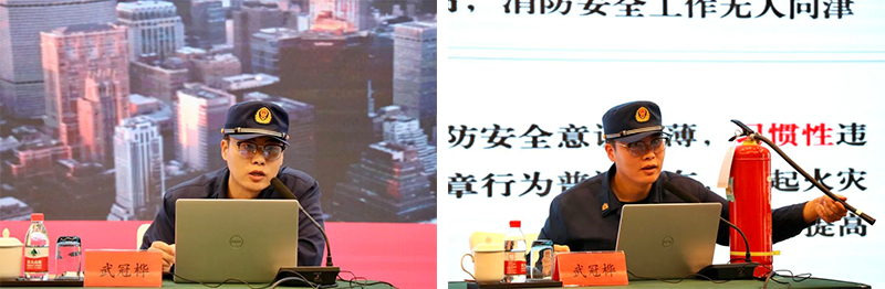 武站長依托多媒體課件,以圖片、視頻等方式,結(jié)合近期全國各地典型火災(zāi)事故教訓(xùn),深刻剖析了火災(zāi)的危險性及防火要求,重點講解了如何預(yù)防火災(zāi)、消防設(shè)施使用等方面的知識,并對日常生活中容易出現(xiàn)的消防安全問題進行了分析,深入淺出地講述了違規(guī)用火、用電、用氣的危險性,以及電動車充電等消防安全知識,使大家充分認識到做好消防安全工作的重要性和必要性。培訓(xùn)會現(xiàn)場,武站長還對滅火器、消防水帶、消火栓等滅火設(shè)備設(shè)施的作用和使用方法進行了示范教學(xué)。