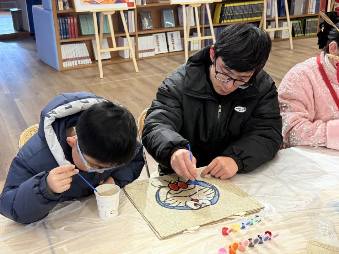 節(jié)日期間,中韓文化客廳開展了以“非遺煥新韻 中韓共年味”為主題的非遺手作賀新春系列活動(dòng),為市民游客奉上非遺“饕餮盛宴”。手作窗花拓印、非遺燒箔團(tuán)扇、非遺紙漿畫等傳統(tǒng)非遺活動(dòng),孩子們?cè)诩议L(zhǎng)的陪伴下學(xué)非遺、做手作,為孩子們打開探索“非遺”之門。同時(shí),在春節(jié)的喜慶氛圍中,市民不僅享受著傳統(tǒng)文化的熏陶,還熱衷于品味書香,這里也成為了親子家庭的另一片天地,許多市民選擇在這里與家人一同沉浸于書香之中,享受閱讀的樂趣。
