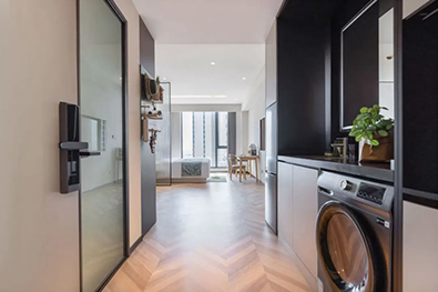 34~74㎡開間,分別有大一居、一室一廳、兩室一廳等多種戶型,價(jià)格約1350元/月起,從獨(dú)居到小家庭需求全覆蓋,室內(nèi)采用簡(jiǎn)約高雅設(shè)計(jì),每間公寓都配備了冰箱、洗衣機(jī)、電視機(jī)、微波爐、獨(dú)立衛(wèi)浴等設(shè)施設(shè)備,滿足日常生活所需,并且公寓內(nèi)有專門的維修人員24小時(shí)負(fù)責(zé)日常配套維護(hù)和維修響應(yīng)。