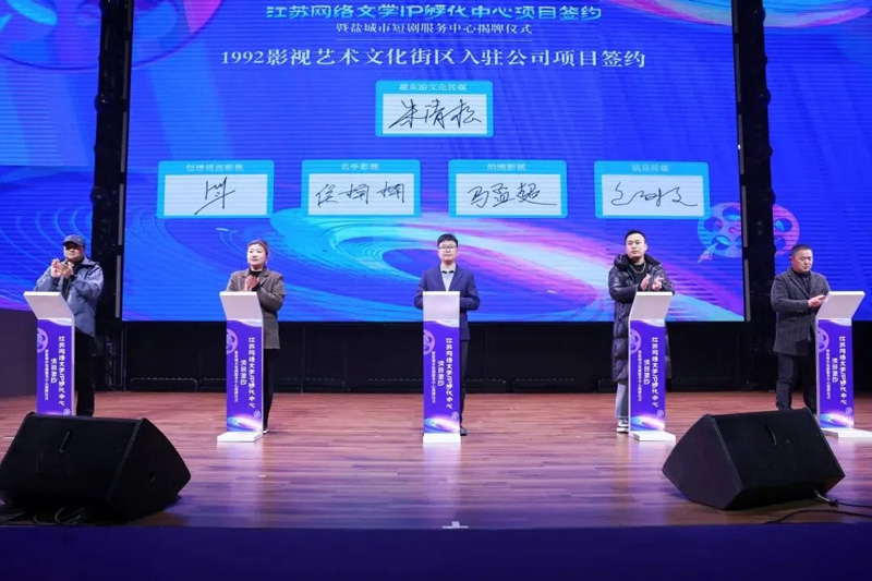 江蘇網(wǎng)絡(luò)文學(xué)IP孵化中心項(xiàng)目簽約暨鹽城市短劇服務(wù)中心揭牌活動(dòng)在東大門街區(qū)舉行