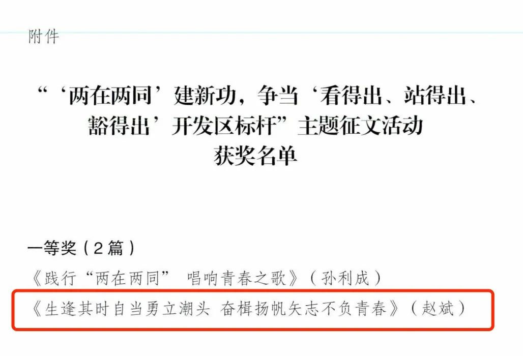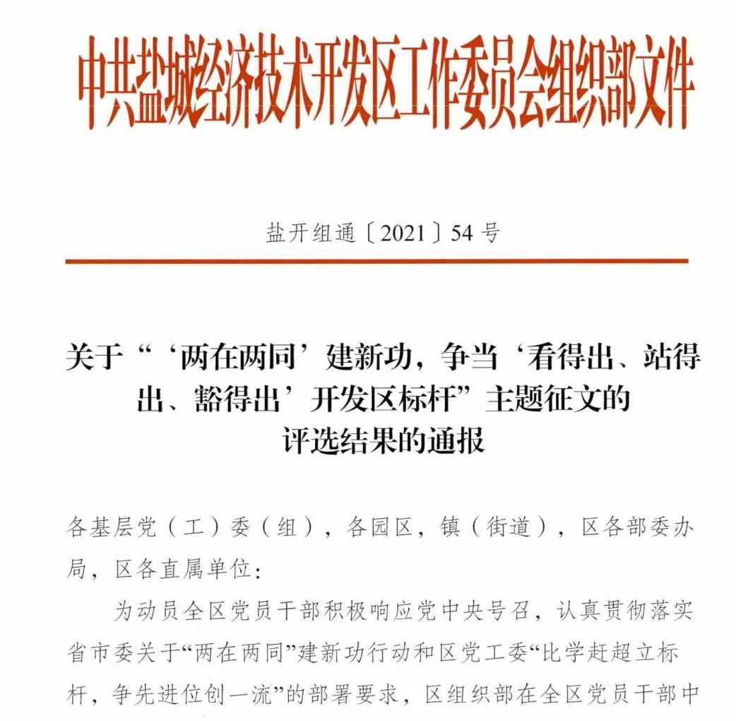 近日,“‘兩在兩同’建新功,爭當(dāng)‘看得出、站得出、豁得出’開發(fā)區(qū)標(biāo)桿”主題征文評選結(jié)果揭曉,集團(tuán)將一等獎(jiǎng)、優(yōu)秀組織獎(jiǎng)等殊榮收入囊中,彰顯了集團(tuán)員工爭當(dāng)表率、爭做示范的先鋒模范風(fēng)采。