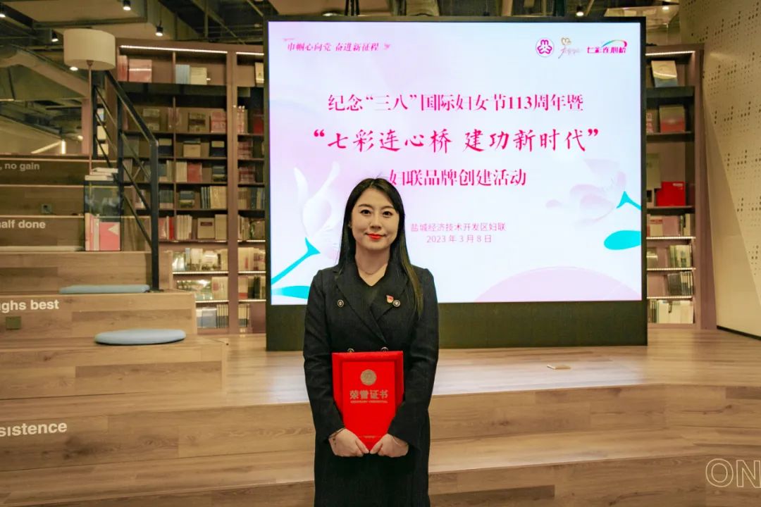 2021年3月,她加入集團(tuán)中韓文化客廳,組建起自己的團(tuán)隊(duì)。兩年多的時(shí)間,從青澀到成熟、從忐忑到從容、從迷茫到堅(jiān)定,中韓文化客廳見(jiàn)證了她的成長(zhǎng),她就是中韓文化客廳店長(zhǎng)陳詩(shī)偉。在今年市紀(jì)念“三八”國(guó)際婦女節(jié)113周年暨“巾幗逐綠創(chuàng)未來(lái)”四大行動(dòng)動(dòng)員大會(huì)上,她榮獲2022年度“鹽城市三八紅旗手”榮譽(yù)稱號(hào)。