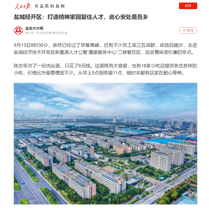 近日,人民日報、《學(xué)習(xí)強(qiáng)國》客戶端江蘇學(xué)習(xí)平臺、鹽阜大眾報等多家媒體以“此處安心是吾家”為題,集中宣傳集團(tuán)新嘉源人才公寓,打造精神家園留住人才。